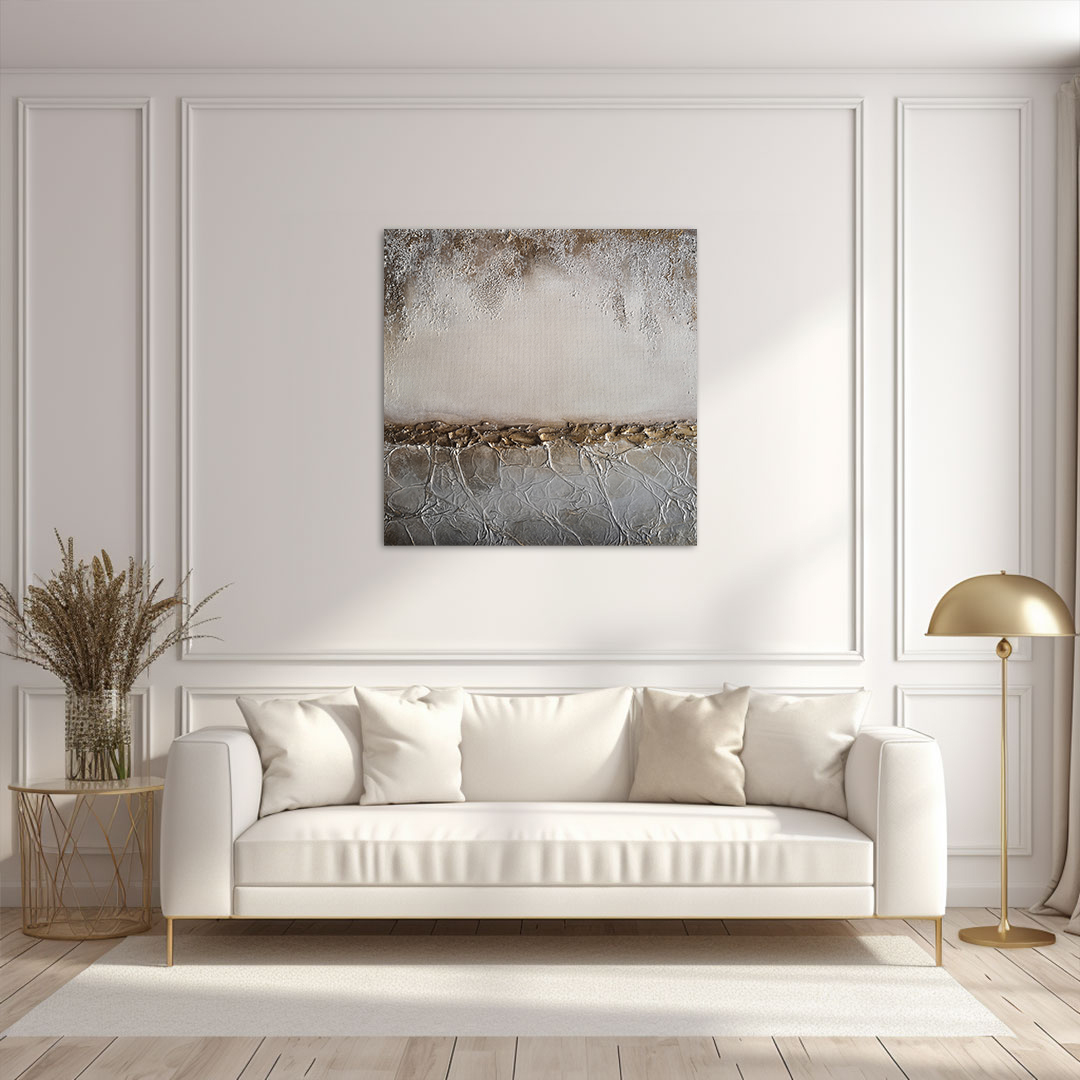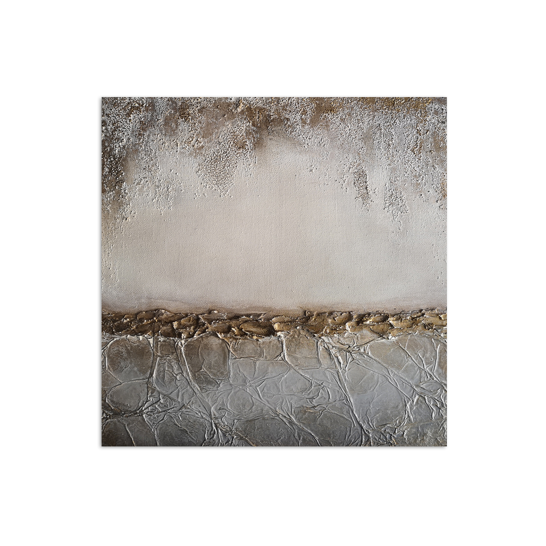 Tytuł: POZA RAMY. KOMPOZYCJA V ROK: 2024 Wymiary (cm): 50 x 50 x 2 Materiały: farby akrylowe, masa strukturalna na…